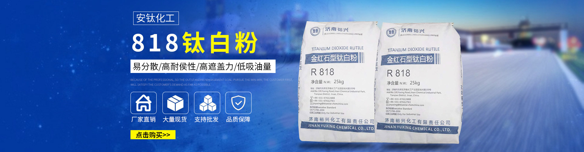 常州安鈦化工有限公司經銷批發(fā)的鈦白粉、沉淀硫酸鋇、立德粉、滑石粉、高嶺土、炭黑、云母粉、彩色顏料、氫氧化鈣、硅微粉、氧化鐵紅、氧化鐵黑、金紅石型鈦白粉、銳鈦型鈦白粉、進口鈦白粉暢銷消費者市場,在消費者當中享有較高的地位,公司與多家零售商和代理商建立了長期穩(wěn)定的合作關系。常州安鈦化工有限公司經銷的鈦白粉、沉淀硫酸鋇、立德粉、滑石粉、高嶺土、炭黑、云母粉、彩色顏料、氫氧化鈣、硅微粉、氧化鐵紅、氧化鐵黑、金紅石型鈦白粉、銳鈦型鈦白粉、進口鈦白粉品種齊全、價格合理。常州安鈦化工有限公司實力雄厚,重信用、守合同、保證產品質量,以多品種經營特色和薄利多銷的原則,贏得了廣大客戶的信任。